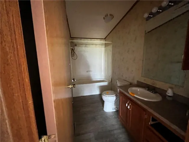 "LongDescription" => "Full bath featuring vanity, dark wood finished floors, wainscoting, tile walls, and a shower"