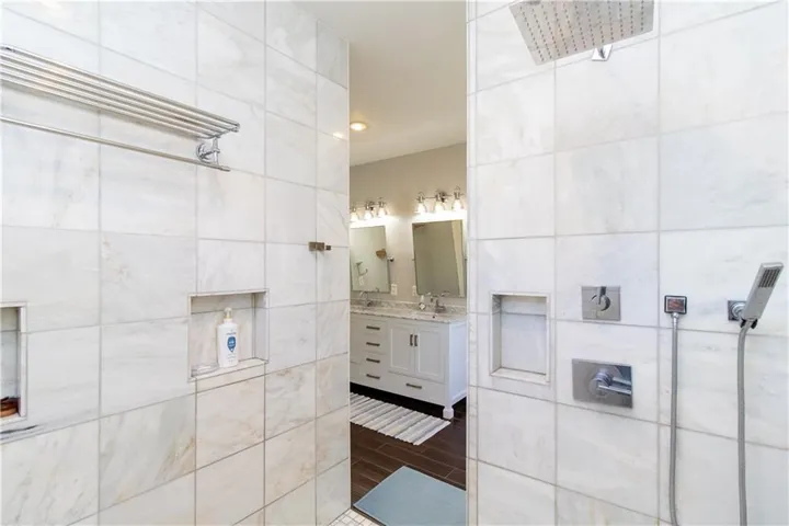 +"PublicRemarks": "Gorgeous Stonecrest home recently remodled with high-end finishes! You will fall in love with the stunning island kitchen featuring gorgeous upgraded quartz countertops, Kitchen Aid wall oven, professional grade 6 burner gas range and hood, stainless apron sink, and additional seating area. The remodeled laundry room provides ample storage and a perfect spot for the coffee bar. Spend time in the vaulted great room while overlooking the stunning backyard that has been freshly landscaped with classic terraced retaining walls, mature plants & trees, plus spacious patio built for entertaining, and grilling station! And the entire exterior was just painted in 2023! The main floor primary bedroom suite is like visiting your favorite high end modern hotel, featuring 2 walk-in closets, double marble vanity, and massive walk-in shower with multiple shower heads! Upstairs, you will find 3 additional large bedrooms, all featuring a walk-in closets! 2 bedrooms share a Jack & Jill style bathroom with their own private vanities and shared full bathroom, while the other bedroom has a private en-suite bathroom. The lower level is currently used as a recreation room with exercise equipment, but the uses are endless and the floors have been treated with durable and high end Polyurea. There is also a large storage room! You will find all of the amenities you have been looking for, including in-ground sprinkler, Polyurea floors in the garage, attic fan, 2 water heaters, zoned HVAC, and of course an EXCELLENT school district!"
