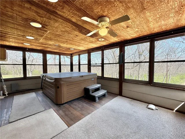 +"PublicRemarks": "Welcome to your secluded paradise on approximately 35 acres in the highly desired Seaman School District just north of the City of Topeka. This luxurious, much loved, one owner custom built estate boasts multiple spacious living areas, soaring ceilings, and abundant natural light and is perfect for hosting gatherings. You can also retreat to the primary suite with a spacious enclosed porch with a hot tub and gorgeous views! The walkout basement includes a 5 X 11 safe room and a family room that offers a large space for entertaining and includes a large bar area with a sink and space for a fridge. Your guests can also spill out into the many paved patio and large deck spaces. The property is surrounded by lush landscaping and is a wildlife enthusiast, nature lover or hunters paradise! There are also two stocked ponds ready for fishing. You'll also enjoy the 34 x 54 outbuilding for your office, workshop, storage or hobbies. Don't miss this rare opportunity for luxury living in a serene rural setting."