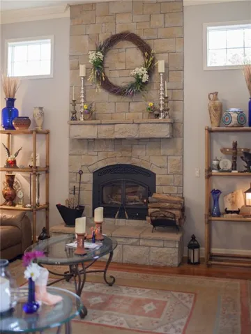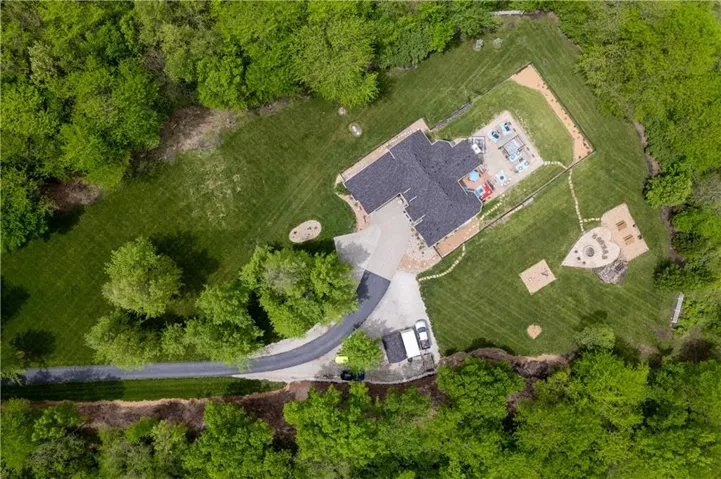 Serene Sanctuary on 6+ Acres! This beautiful home has 3,000 sq.ft. upstairs with a full 2,000 sq.ft. in the semi-finished walkout basement, with 12ft. ceilings, hardwood and tile floors, and a wood-burning fireplace, has been recently repainted and very well maintained with a brand new roof and gutters. EXTENSIVE RENOVATION WORK has been done to the beautify the grounds, a tree-lined path leads to the house with a private security gate for added protection and privacy along with an oversized bonfire pit perfect for stargazing. Built in 2006- this home features 4 spacious bedrooms, 3 full and 1 half baths, and large 2 car garage that could easily be expanded. The fully furnished walk-out basement is partially finished and makes for an excellent entertainment center perfect for hosting Chiefs parties, and has the potential to be fully finished with an additional bedroom and bathroom. This home is perfect for someone seeking a well-maintained classic home, which can entertain a large number of guests, and also large peaceful and private 6.37 acre lot. Please note 3 of the acres have been meticulously manicured, with 3+ additional acres that are wooded and could be cleared. \r\n