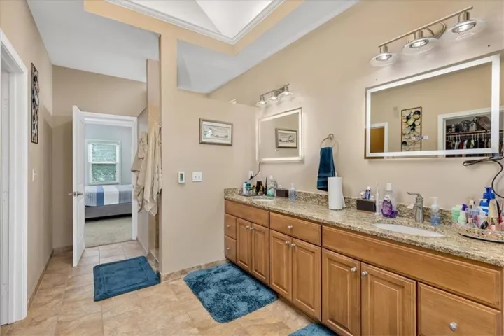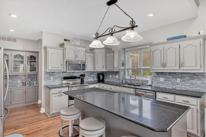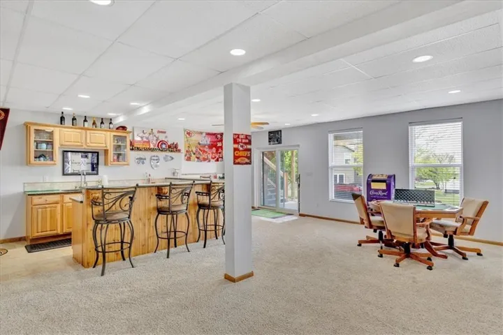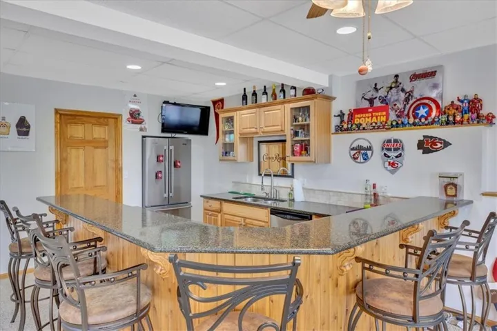 +"PublicRemarks": "For starters, what most homeowners want to hear, cul-de-sac lot, main floor primary bedroom, 3 car garage, finished walkout basement with bar and a nice sized lot (sprinklers included). Come check out this beautiful 1.5 story with 3 large bedrooms upstairs. Also, upstairs offers a huge loft that could be utilized as a play room, office, game room, storage area or a 5th non conforming bedroom. Main floor family room is wide open and perfect for entertaining. Kitchen has hardwoods, island, granite countertops, hearth room with see through fireplace and built in desk and coffee bar with plenty of cabinet space. Kitchen leads to a deck that walks down to an oversized patio at the basement level. Primary bathroom contains heated floors, double vanities, and a walk in closet. Basement is finished, offering a bar/kitchen, full bathroom, plenty of storage area and tons of space for possible 5th conforming bedroom. HOA includes a swimming pool, 2 fishing ponds, and a playground. Get this on your list and set up a showing today!"