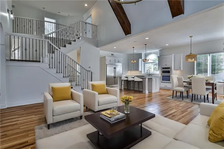 The kitchen has ample counter space, and connects seamlessly to the main living area, making everyday living easy. The living room features a cozy fireplace with an accent wall, adding warmth and character to the space.\r\n