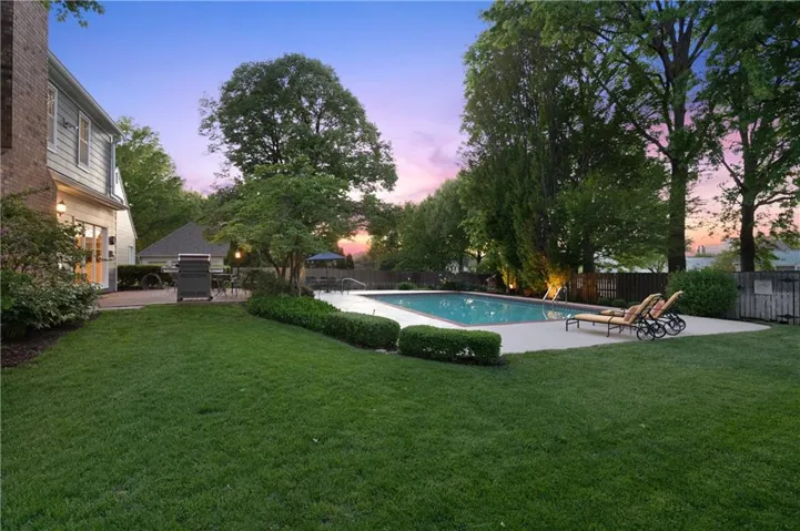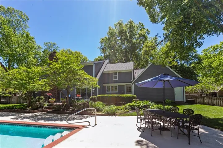 +"PublicRemarks": "Just what you have been searching for, perfect for everyday living & entertaining this charming Cape Cod two-story in coveted Leawood Country Manor features 4 bedrooms, 3 1/2 baths on a beautifully landscaped lot with gorgeous brick patio and in-ground pool. Step into the meticulously cared for home that exudes warmth and boasts an abundance of natural light. The main floor features a beautiful entry with center stairs, large living room and dining room. These rooms seamlessly flow into the family room and updated eat-in kitchen equipped with island, newer double oven & dishwasher, gas cooktop, ample counter space and loads of cabinets. The family room features hardwood flooring, cozy fireplace, wet bar, built-ins and glass door with views and access to the gorgeous back yard and pool. Upstairs you will find 4 comfortable bedrooms, two with delightful dormers and one with built-ins that could easily double as an office. The primary suite features roomy closets, bathroom with double vanity, separate shower and tub. Enjoy time with your family and friends in the newly updated basement which boasts a large screen TV, custom built shelving, full bathroom, and large unfinished area for all your storage needs. The laundry room off the kitchen provides plenty of space; the 2 car garage is oversized. The lush backyard with an expert gardener's touch features a gorgeous Gunite pool with new decking and plenty of room for outdoor entertaining. You will love the tree lined, family friendly neighborhood that includes a park with walking trails & playground, community pool, fishing pond and social events planned throughout the year. Prime Leawood location in the Blue Valley school district and close to highways, restaurants and shopping."