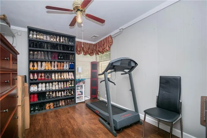 "LongDescription" => "Unfurnished office with hardwood / wood-style floors, plenty of natural light, a textured ceiling, and ceiling fan"