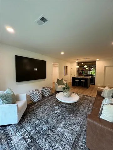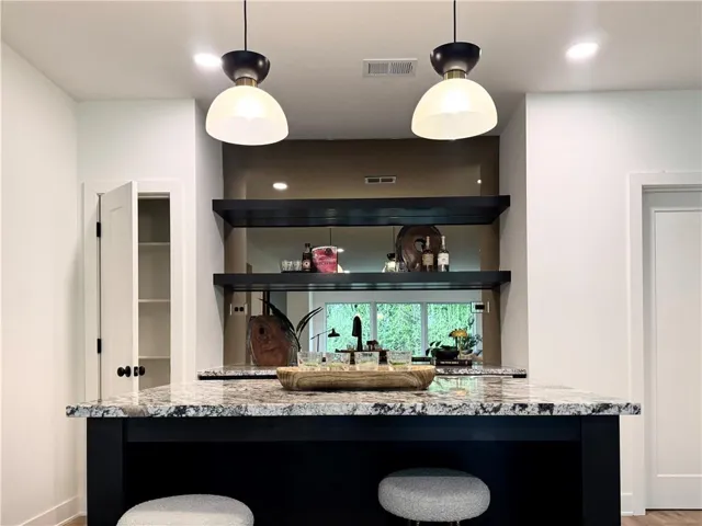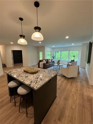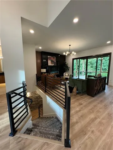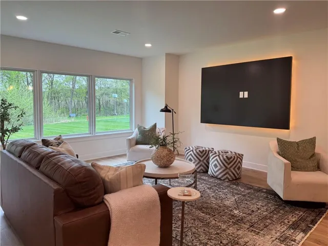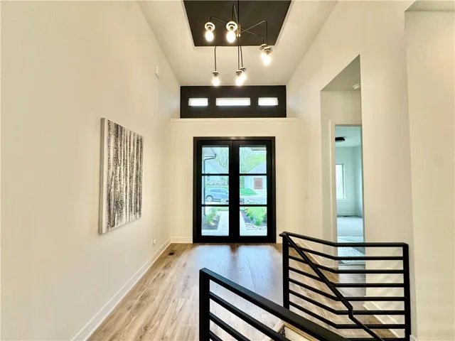 "LongDescription" => "Bonus room featuring vaulted ceiling, dark wood-type flooring, and recessed lighting"