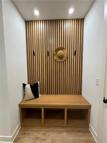 "LongDescription" => "Bonus room featuring dark wood-style floors, recessed lighting, lofted ceiling, and wood walls"