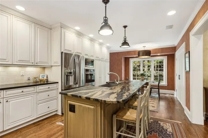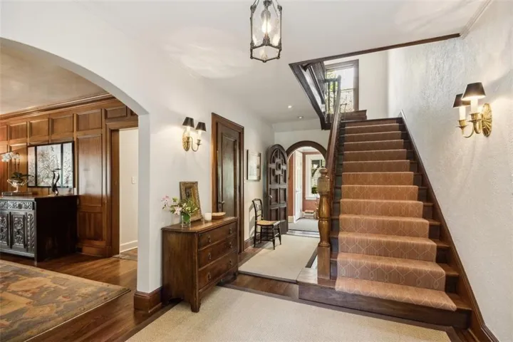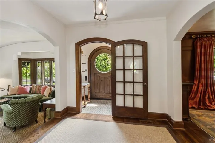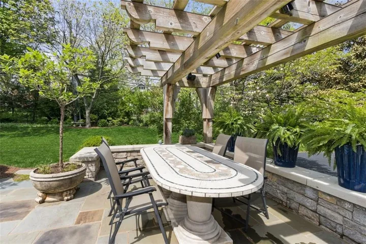 +"PublicRemarks": "Took a quick break to make this amazing home even better! This gracious Tudor has the best of 1928 and 2024. You enter a large foyer with a welcoming wide staircase. Step down into the beautiful living room with barrel curved ceiling and a French marble fireplace. The dining room is paneled in stunning walnut – note the original chandelier and French doors that lead to a bright sunroom which could make a charming office. There is a butler’s pantry off the dining room and 2 powder baths on the first floor. The updated kitchen has a breakfast room, center island, generous cabinetry and an open view to the great room. The great room is one of the prettiest additions I’ve ever seen. Perfectly constructed to suit the original feel of the home. A very spacious room, extended beamed ceiling, sliding French doors to Terrace, and beautiful staircase to lower level. The terrace is a large and thoughtful design with multiple seating areas, stone walls, blue stone pavers, fountain and views to the lawn and lovely gardens. Back inside, the lower level offers 2 terrific spaces. A large family room with a fireplace, wet bar and pool table. 9 foot ceilings make this unique and inviting. There is an adjacent playroom with work-out space. Half bath and laundry room on this level. On the 2nd floor you will find a primary suite with a sitting room, sleeping room, bath has double sinks and walk-in closet. A nursery (currently used as an office) shares a full bath with the large front- facing 3rd bedroom. 4th bedroom on this level faces the back – also large. The third floor offers great space for an additional 5th bedroom or playroom. Newer full bath with heated floors and a birds eye view of the back terrace and yard. The gardens offer lovely views in all 4 seasons. Dozens of peonies in the spring! This is an exceptional and beautifully cared for home. So close to Loose Park, The Plaza, Crestwood and Brookside. See supplements for additional information."