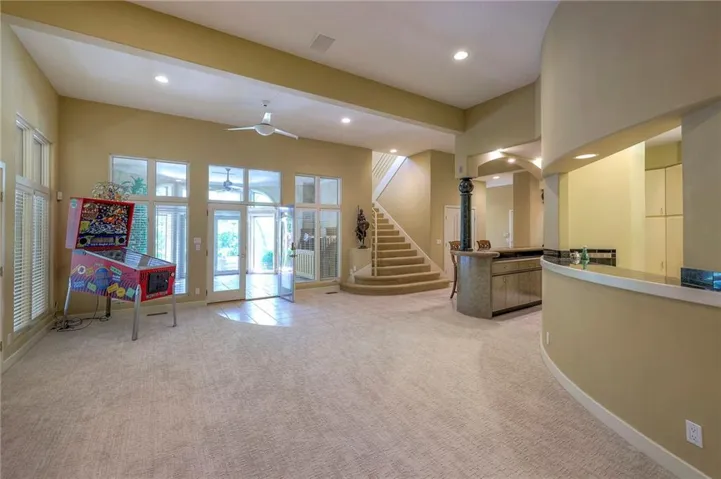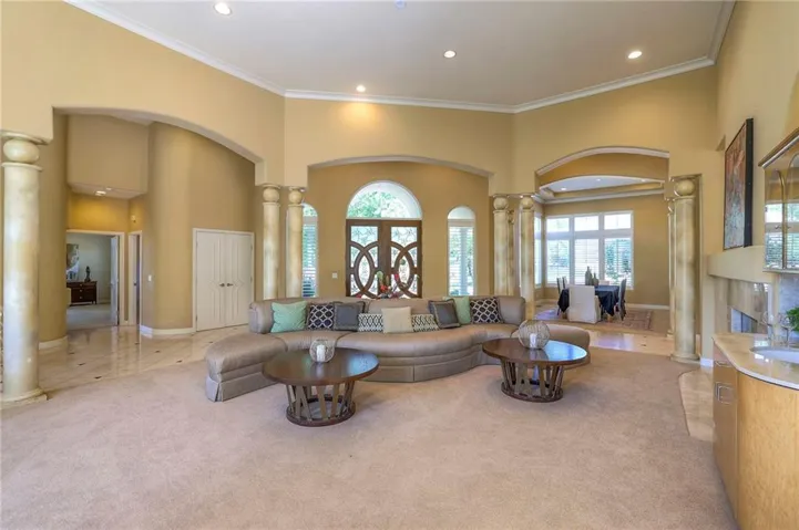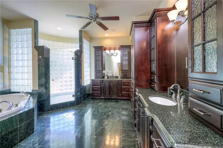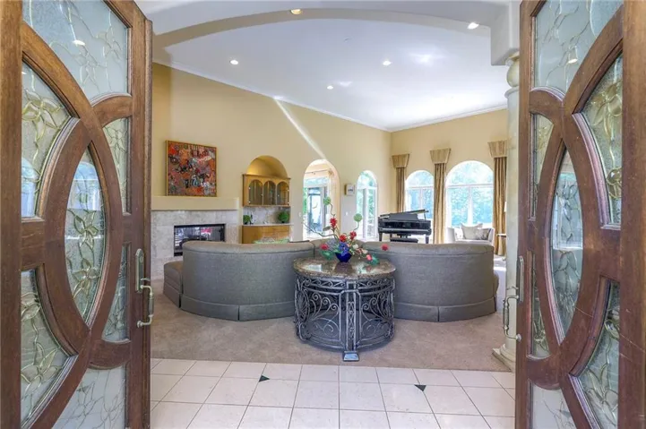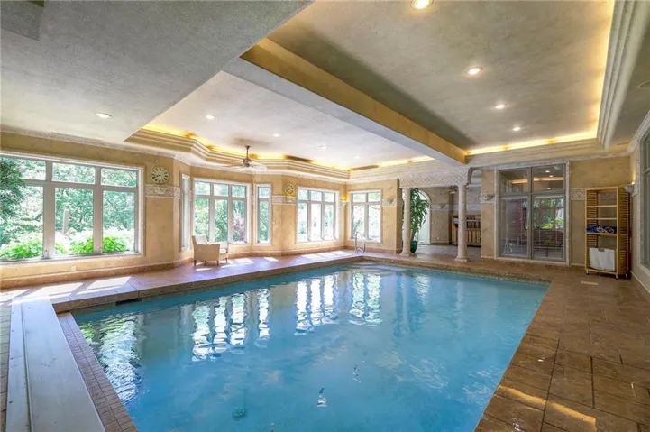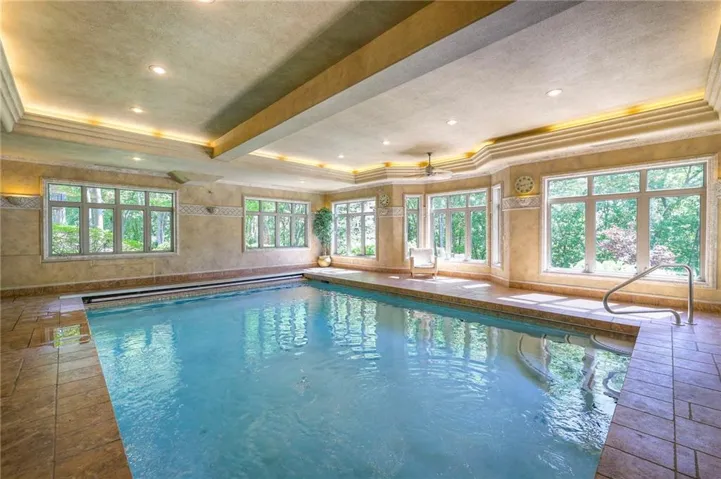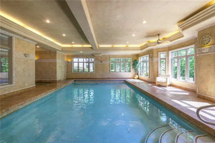 +"PublicRemarks": "Custom built on a premium estate lot in the Estates at Timbertrace, this expansive reverse 1-1/2 story home offers exceptional indoor & outdoor living spaces. Upon entry you are greeted w/ floor to ceiling windows which surround the main floor 14' ceiling living spaces allowing for abundant natural light. The large open hearth/kitchen combo w/island opens to an expansive wrap around deck overlooking a beautiful wooded lot and your backyard oasis. The main floor dining room could serve as an office. The 3-car oversized garage w/epoxied floors, multiple cabinet storage & an exterior door leading to dog run is conveniently located off the main floor kitchen as well as the laundry room. The primary ensuite bedroom offers a sitting area & workout/dressing room. The adjoining primary bathroom features separate vanities, oversized shower and jacuzzi tub in addition to plenty of storage space within the 17' x 11' walk in closet with built-ins. The custom elevator off main floor hearth room awaits to make your transition to the walk-out lower level effortless. There you will find an additional full kitchen with bar, large media/family room, two bedrooms and three full bathrooms. But wait, there’s more!! The indoor swimming pool and hot tub, surrounded by windows exposing amazing backyard views of nature, will make you feel as though you are outside any time of year. From the lower level, head outside to a lovely patio and then down the flagstone pathway to your private full size stone wood burning fireplace and sitting area. You will be surrounded by total privacy and a beautiful waterfall feature making this outdoor retreat area even more desirable. Off the lower level is yet another oversized garage which would easily fit a boat or car lift. Refinished hardwood floors & new carpet in LR & family room. Custom built for the discerning owner and waiting to be enjoyed by the next, don't miss seeing this beautiful estate property."