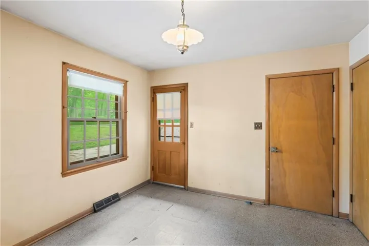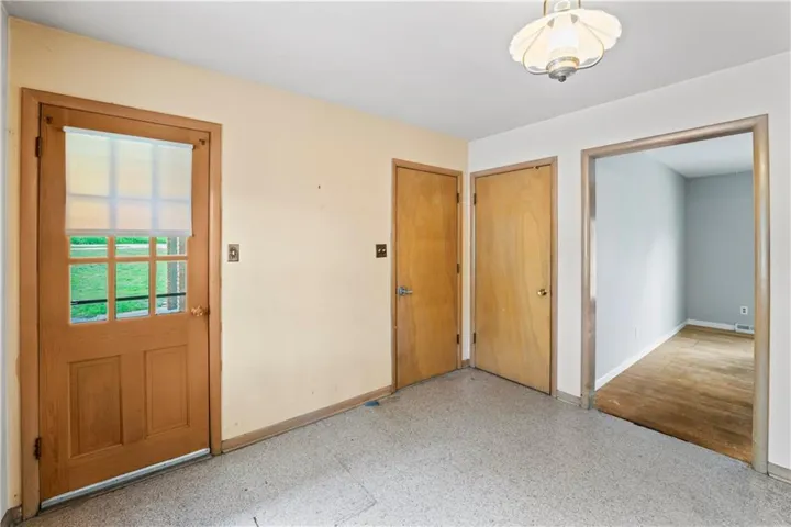 +"PublicRemarks": "This authentic ranch-style residence offers a promising canvas for a new homeowner. Set on an expansive lot, the property features a convenient horseshoe driveway for easy access. The exterior boasts low-maintenance brick and vinyl siding. Inside, the home showcases hardwood flooring throughout and the removal of popcorn ceilings has already been done for you. The kitchen awaits your personal touch, offering ample space for a redesign that integrates the eat-in area seamlessly. The converted bedroom to a spacious mobility device friendly bathroom featuring a roll-in shower could be returned to the 3rd Bedroom. Another sizable bedroom offers the convenience of his and hers closets alongside a private bathroom. The lower level presents an opportunity for customization, with the potential to transform it into an exceptional recreational space. Abundant storage is available in the full basement."