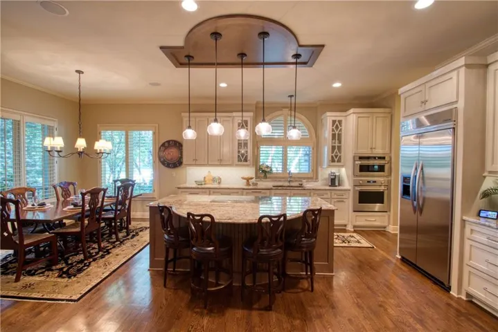 The moment you step inside, you're greeted by an impressive entryway that leads to a formal dining room, which features unique architectural tray ceilings—and is perfectly sized for entertaining friends and family.\r\n