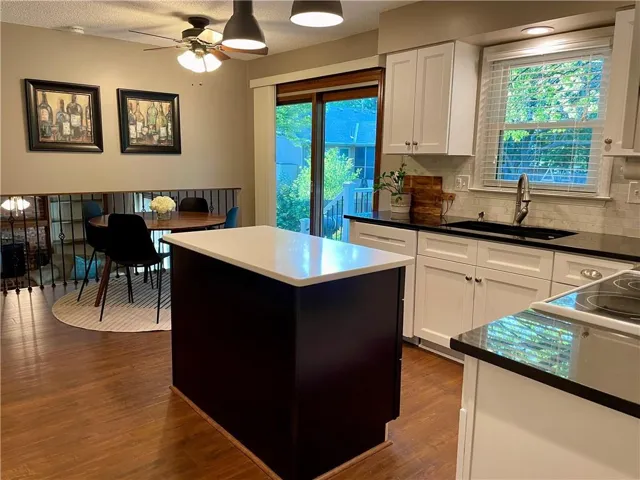 +"PublicRemarks": "Welcome to your meticulously maintained 3-bedroom, 2-bath home, nestled on a serene cul-de-sac, offering picturesque views of lush greenspace. This immaculate residence exudes charm and tranquility, with lush gardens and mature trees adorning the generously sized, fenced lot. As you step inside, you'll discover a home that has been thoughtfully updated and lovingly cared for. Newer flooring throughout the entire home! The great room welcomes you with an inviting bay window, flooding the space with natural light. The heart of the home showcases a stunning kitchen remodel, featuring granite and quartz countertops, white cabinets, an island, updated lighting, and sliding doors that open to the newer composite deck. The formal dining room offers a sophisticated eating space with updated lighting, paint, and wainscoting. The lower-level family room boasts a beautiful brick fireplace, built-in bookshelves, new carpet, and access to the lovely patio, providing a cozy retreat for relaxation. The newly finished basement offers a versatile 4th non-conforming bedroom/rec room/office, alongside a spacious, dream laundry room and ample storage. Retreat to the primary bedroom, adorned with updated lighting and fresh paint, while the primary bathroom awaits with marble counters, dual sinks, newly tiled floor, white cabinets, and a beautifully tiled shower. Two additional bedrooms feature new paint, lighting, and carpet, and share an updated bath with quartz counters, black cabinets, new tiled floors, and new tiled shower. With recent upgrades including steel siding, composite deck, doors, gutters, and insulation, this home truly epitomizes turnkey living. Conveniently located near highway access, schools, shopping, and parks, don't miss your chance to make this dream home yours."