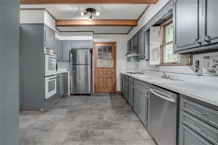 +"PublicRemarks": "Don’t miss this charming Dutch Colonial in Briarcliff, located on a large 1/2 acre lot! Full of history, this home retains much of the integrity of its age including original hardwood floors, beautiful crown moulding, and unique built-ins throughout. Main floor showcases two previous additions to the home including a 1-car garage and cozy den with ample bookcases, cabinets, and a second fireplace! In the kitchen you'll find gorgeous wooden beams on the ceiling, painted cabinets, stove cooktop, and double oven. Kitchen also features newer stainless steel dishwasher, microwave, and refrigerator! Walk up the staircase to 3 spacious bedrooms on the second floor with walk-in closets and large windows. Basement includes additional storage space and great workshop area! Enjoy evenings on the back patio looking out into your sprawling backyard. Conveniently located just 5 minutes to The Village at Briarcliff Shops, 10 minutes to downtown KC and only 15 minutes to KCI airport! So much space and charm--here’s a great opportunity to bring a beautiful part of history back to life! Home is being sold “as-is.”"