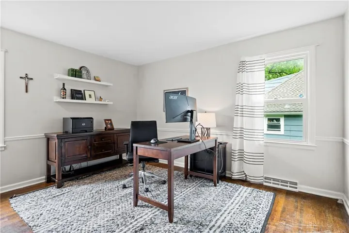 kitchen features abundant cabinetry, a center island, and views of the private backyard. All bedrooms are generously\r\n