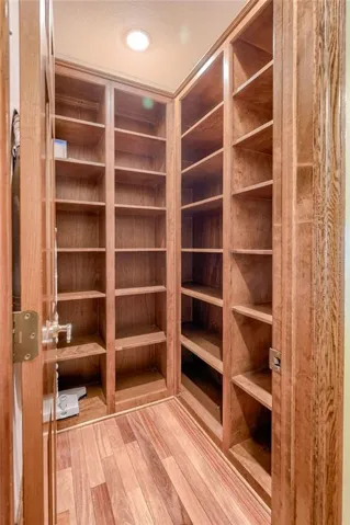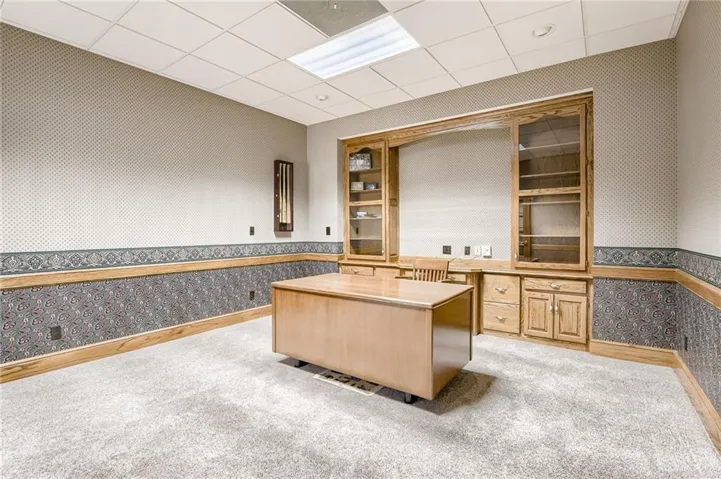 "LongDescription" => "Office area featuring wooden walls, hardwood / wood-style flooring, and crown molding"