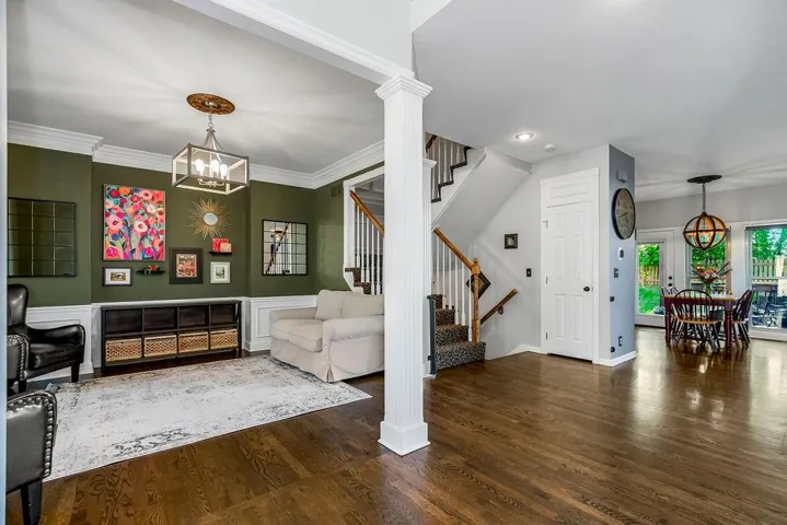 "LongDescription" => "Entrance foyer featuring dark wood-style flooring, recessed lighting, and a chandelier"