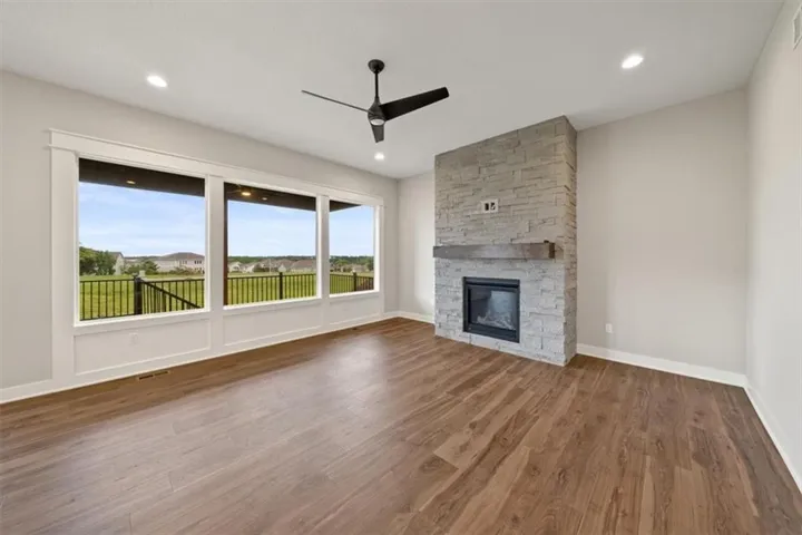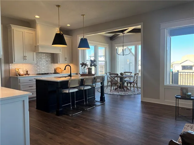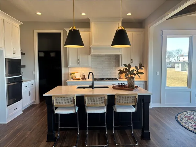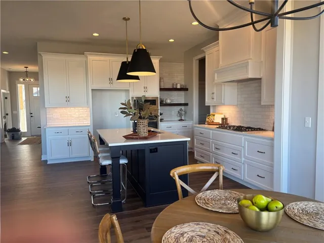 +"PublicRemarks": "Move-in ready! The Inglenook 2-Story by award-winning Inspired Homes. Featuring 5 bedrooms/4.5 bathrooms, main level office/flex room & finished lower level with an amazing wet bar! 10' ceilings on main floor with oversized windows, chef's kitchen and great room with stone fireplace! The kitchen is light and bright with built in SS appl, 5 burner gas cooktop, soft close cabinets and drawers with under cabinet lighting. The walk-in pantry off the garage is perfect for those Costco runs. Continue to be impressed upstairs with the spacious Primary suite and bathroom which features a personal vanity and glass enclosed shower. The finished lower level features a beautiful wet bar with custom cabinets and beverage fridge. Situated in Huntford's newest and final phase of 36 estate sized lots where you can enjoy the outdoors, peace & quiet and scenic trees surrounding the community. Just minutes away from Lake Olathe Park, and only 10 minutes to grocery/restaurants."