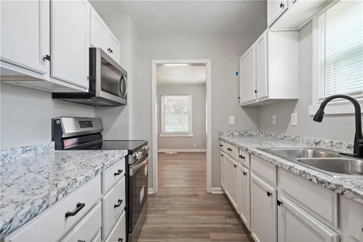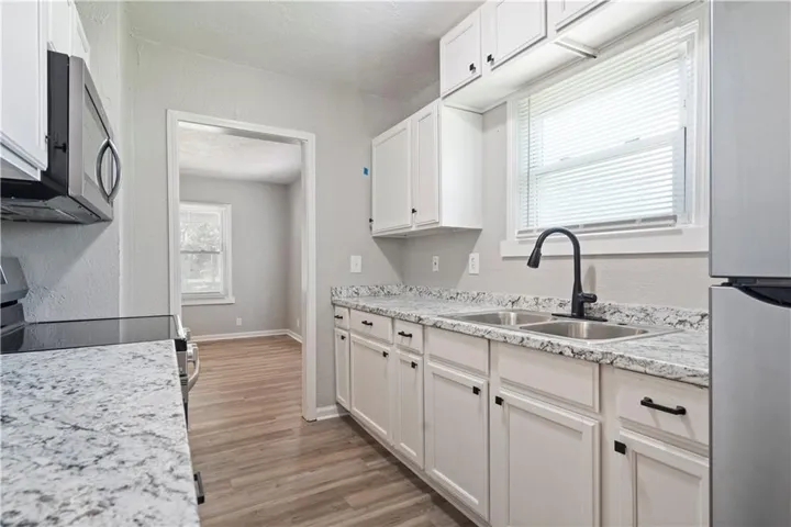 +"PublicRemarks": "Welcome Home!! Take a look at this move in ready home! A covered porch as your entering home. A long driveway leading to garage. Two bed, one bath all remodeled. Primary bedroom with access to the bathroom. Gallery kitchen fully remodeled with all NEW appliances staying with property. NEW roof on home and garage installed June 2024. Dont miss this perfect starter home and/or downsize!"