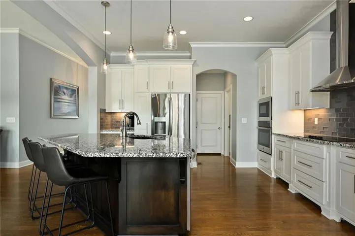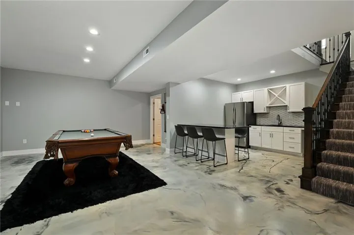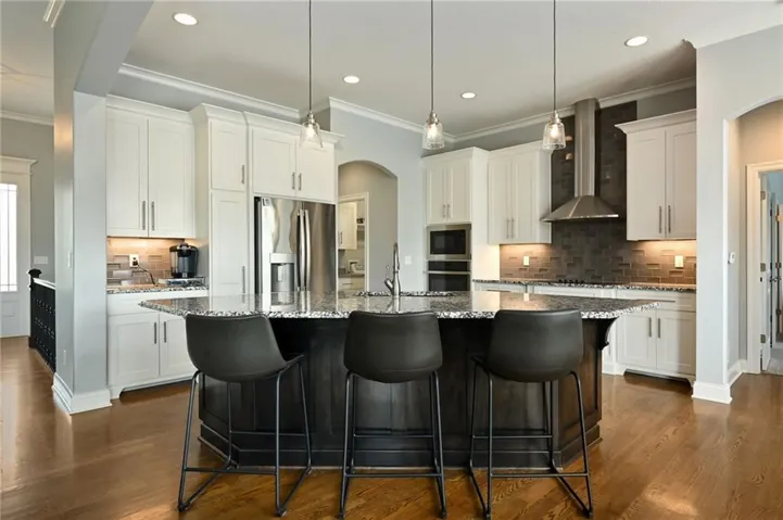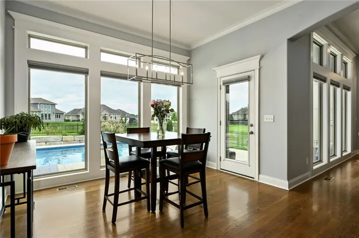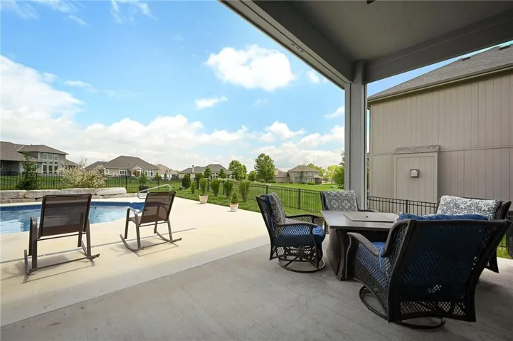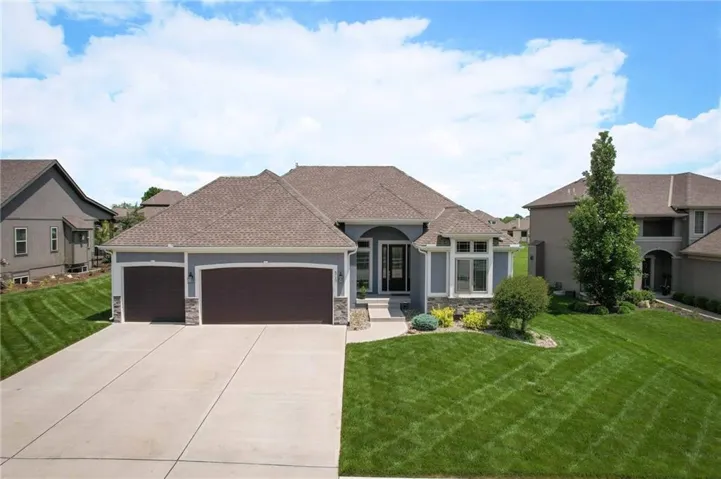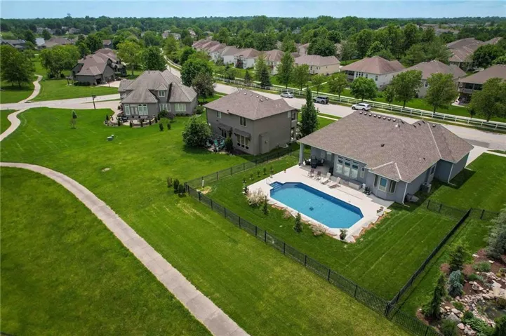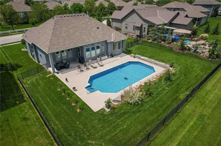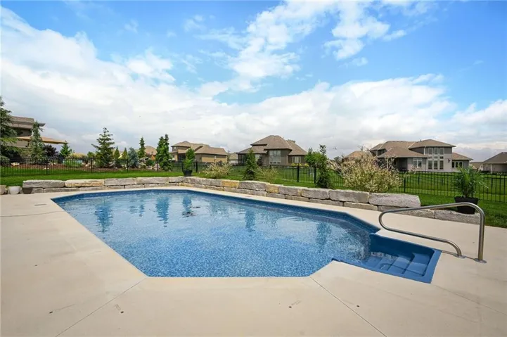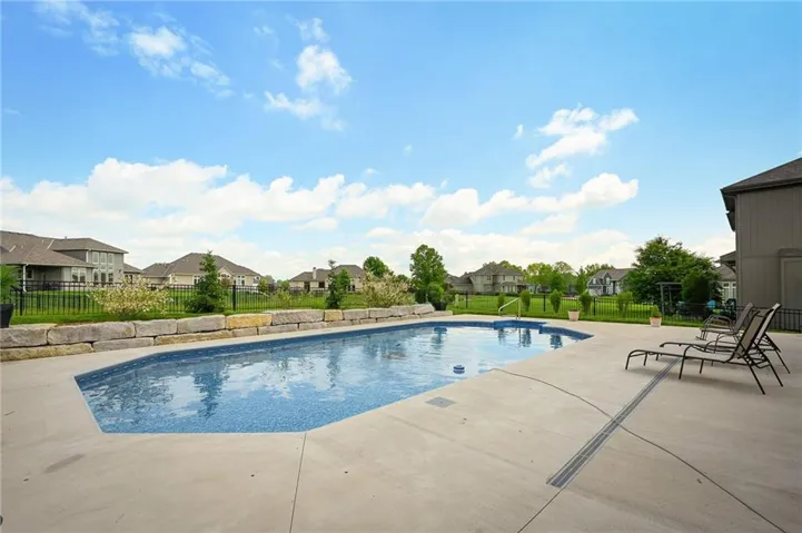 +"PublicRemarks": "Experience the epitome of main-level living in this exquisite true ranch home, designed with an open floor plan ideal for entertaining. The home boasts high-end finishes throughout, including granite countertops in the kitchen and bathrooms, gleaming hardwood floors, and a striking stone fireplace with built-in shelving. Vaulted ceilings enhance the spacious feel, while a large kitchen island and a walk-in pantry add both style and functionality. Practical features include a main-floor laundry, a covered patio perfect for relaxing outdoors, an in-ground sprinkler system for easy lawn maintenance, and a spectacular in-ground pool. The generously sized, fully finished basement offers additional living space, complete with a bedroom and an in-home gym, perfect for a private workout. This home is a perfect blend of luxury and comfort, designed to accommodate a sophisticated lifestyle."