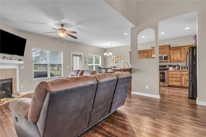 "LongDescription" => "Living room featuring wood finished floors, a textured ceiling, and a glass covered fireplace"