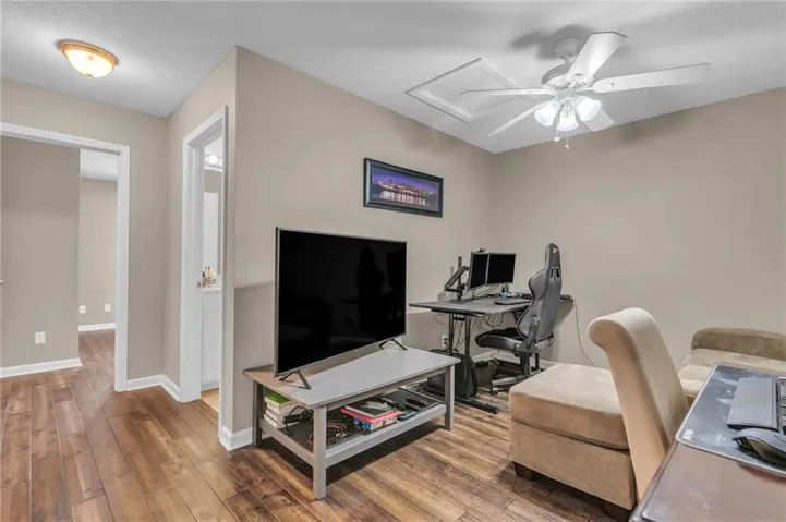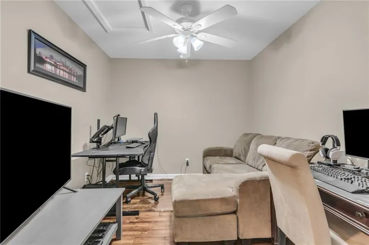"LongDescription" => "Office with a textured ceiling and wood finished floors"