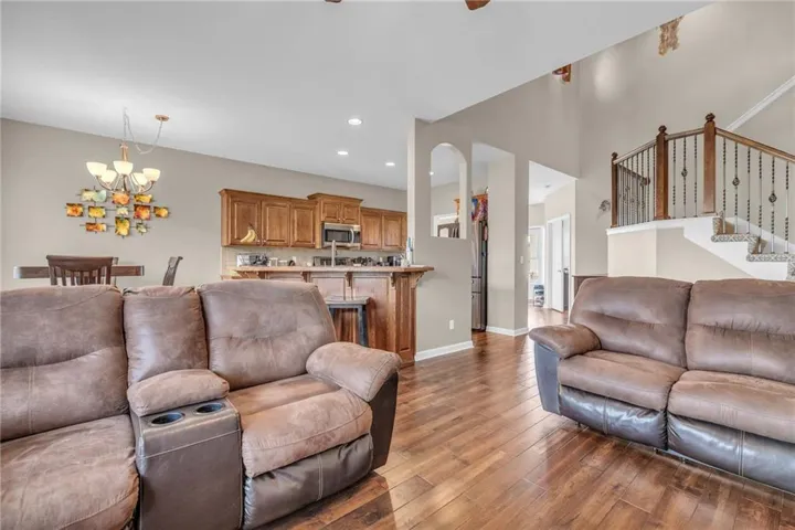 "LongDescription" => "Living room with wood finished floors, a textured ceiling, and stairway"