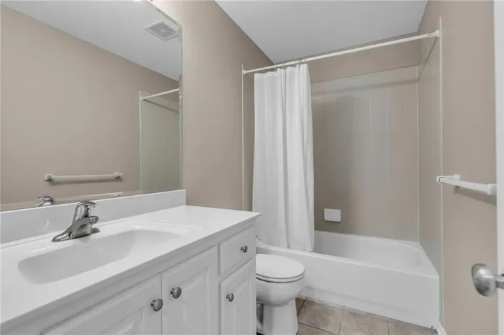 "LongDescription" => "Bathroom with tile walls, shower / tub combo, and vanity"