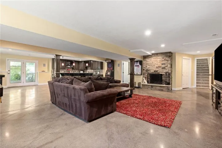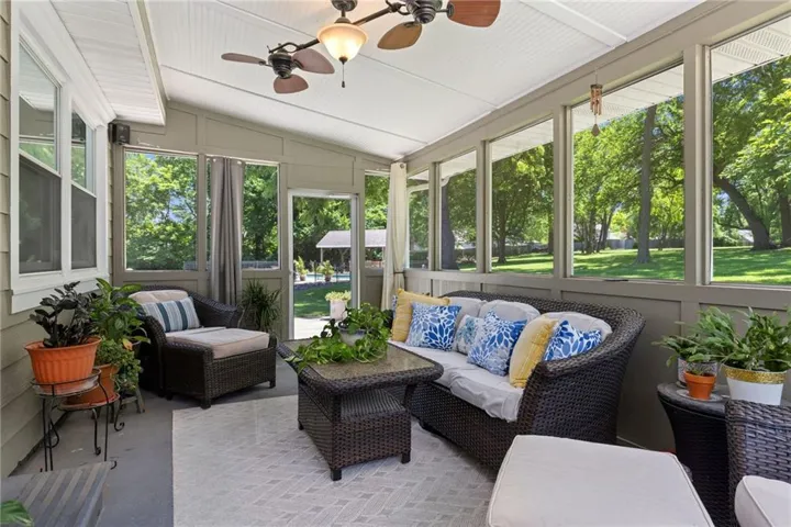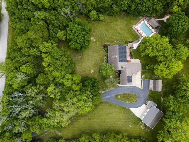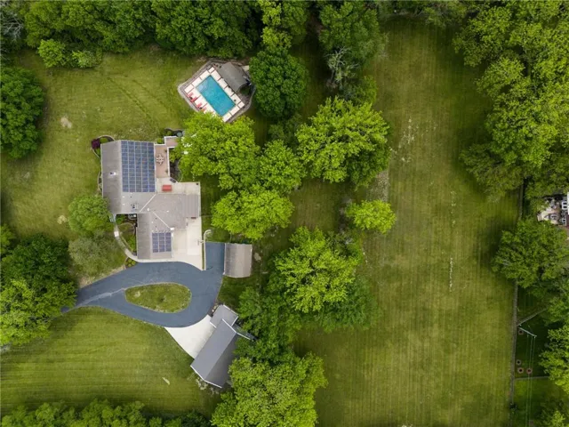 If you've dreamed of living on an acreage property without leaving town..this home has the BEST of both worlds! INCREDIBLE South KC property tucked away on 5.8 acres of land and located inside KCMO city limits. Enter the gate and you feel transported to the peaceful countryside. The wonderful front porch is the perfect spot to enjoy the tranquil setting. This home is a ranch floorplan with 4 spacious bedrooms and 4 full bathrooms. The updated kitchen has granite counters, custom cabinetry, walk in pantry, stainless appliances, 2 ovens and Jenn Air gas cooktop. A large mudroom/laundry room is conveniently off the garage. Formal living room and dining room both feature a fireplace. A cozy hearth room family room opens to the kitchen and fabulous screened in porch. Great entertaining space in the finished walk out lower level with stained concrete floor and large wet bar. Your DREAM outdoor space awaits with a 18x36 heated pool and gorgeous cabana and full outdoor kitchen. This is the perfect outdoor entertainment area! The newer (2019) 3 car insulated outbuilding is 30'x46' has room for everything and features 10' automatic doors, power, lighting, and gutters. Solar panels keep the electricity bills to an average of $60/month! A picturesque barn is original to the property and has a loft and concrete floor. \r\n