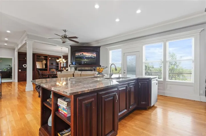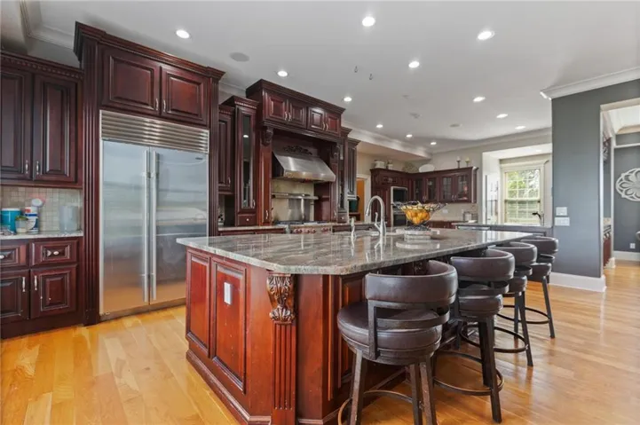 +"PublicRemarks": "Welcome to your own private oasis on 12.92 +/- picturesque acres! As you approach the house, you'll notice the long private tree lined driveway leading to this beautiful 6 bedroom, 5½ bathroom, 1.5 story home overlooking the 1 acre lake. Floor to ceiling windows let in tons of natural light, with incredible views of the property. Stunning great room with vaulted ceiling, built-in cabinets and lovely fireplace. Home office with french doors. Gourmet kitchen hearth room featuring high end appliances, granite countertops, plenty of cabinet space, large island, 2 walk-in pantries and cozy fireplace. Plenty of room to entertain family and friends, either here or in the formal dining room. Awesome theatre room! The large primary suite with sitting area provides main level living boasting whirlpool tub, separate shower and huge walk-in closet. The 2nd level has 4 bedrooms with walk-in closets and 2 full bathrooms, offering comfort and privacy for guests. Full sized gym and office could be converted into a 7th bedroom and it has an adjoining full bathroom. 1000 sqft exercise room/guest quarter, constructed with a separate entrance above the 4 car garage. Equivalent in size and below the garage is a subterranean garage. This is a great multi-purpose room (presently a gymnasium) but could be transformed to your liking. Finished walk-out lower level is equipped with 2nd kitchen, multiple living and recreational spaces, your own private sauna, 6th bedroom and full bathroom. Walkout to enjoy the outdoor entertaining space boasting sparkling in-ground pool with swim up bar and 2 sun ledges. Fabulous sunken outdoor kitchen with pergola, outdoor sound system, hot tub, firepit and large deck. The 4 car attached garage accommodates multiple vehicles and provides additional storage. Don't miss this amazing opportunity to own the perfect blend of comfort and luxury in the country but close to the city - great location! Award winning Spring Hill schools. Priced under recent appraisal!"