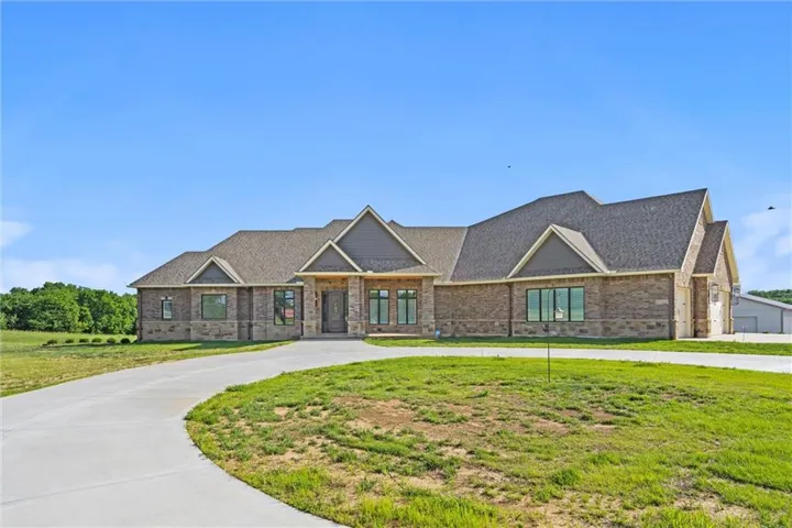 Exquisite, newly constructed Estate, nestled on 6.75 pristine acres, in the Platte County R3 School District. Discover the pinnacle of luxury living, in this breathtaking, custom built residence, boasting an impressive, 7200 sq. ft. of sophisticated living space, designed to offer the upmost in style, comfort and opulence. Constructed just over a year ago, this property merges meticulous craftsmanship with unparalleled elegance, featuring a harmonious blend of brick and stone. As you enter through the grand foyer, you are greeted by soaring coffered ceilings, and an open, airy layout that seamlessly connects the living areas. The heart of the home features not one, but two Chef's kitchens, each equipped with top-of-the-line appliances, custom cabinetry, pantries and expansive islands, perfect for meal preparation and entertaining. Granite countertops and designer fixtures and finishes, complete these culinary havens.\r\n