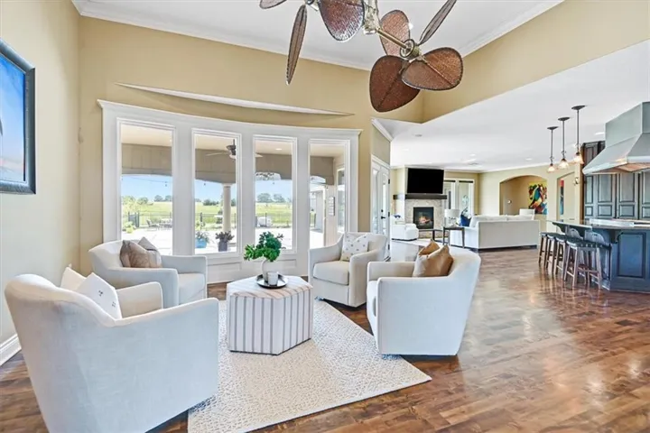 +"PublicRemarks": "Prepare to fall in love! This breathtaking 9.41 ACRE estate has it all. Enter into the sea of gorgeous hardwoods, large OPEN floorplan and floor to ceiling windows bringing in a view of the sparkling POOL & HOT TUB. The chef in the family will create masterpieces on the huge WOLF RANGE while entertaining guests inside and out. The home wraps around the stunning pool & patio allowing you to entertain al fresco from several rooms. The Primary Suite is fit for royalty. Walk out from the Primary to the beautiful pool deck or relax in the Primary Bath large soaking tub in front of the fire. One of the two walk-in closets in the Primary Suite has a phenomenal California closet system fit for the clothes horse in the family. Start your day with a workout in the large GYM, and end your day with guests gathered around the BAR, WINE ROOM, GAME ROOM & THEATER in the walkout lower level. For your guests who chose to stay a little longer, the beautiful GUEST HOUSE will definitely keep them happy. This one bedroom, two-car garage home also boasts an open floor plan and an exquisite garden behind. For the handy-person in the family, the OUTBUILDING offers the perfect retreat. With a concrete floor and electrical, you can escape into your project for hours. When I say it has it ALL, it truly does."