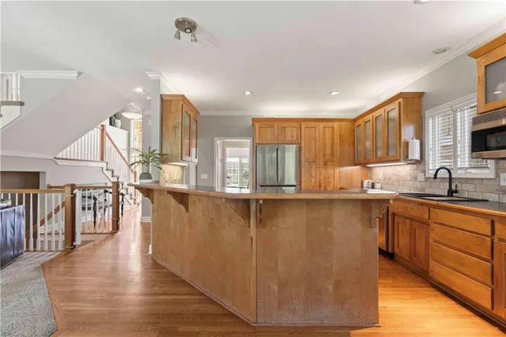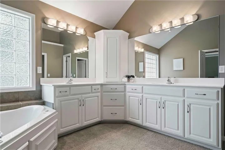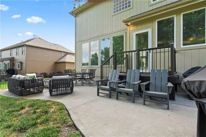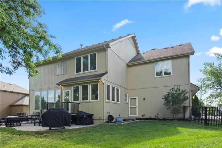 +"PublicRemarks": "This custom 2-story home has stunning front elevation and sits on a generous corner lot with a side entry and 3 car garage. As you enter you are greeted with vaulted ceilings and offset staircase. The main floor offers a formal dining/office flex space as well as open kitchen with walk in pantry, dining and family room space. The built in kitchen area has been recently transformed and would easily fit a large family. 2nd level of the home offers an additional flex room currently used as a play room and has 4 large bedrooms and 2 full bathrooms. The full finished basement offers a workout room/flex space, wet bar, pool table that stays and living area as well as storage space and has brand new carpet. The backyard is fenced, offers a patio space and has beautiful landscaping. This home offers so much natural light, extra space for all of you needs and is in the Lees Summit school district."