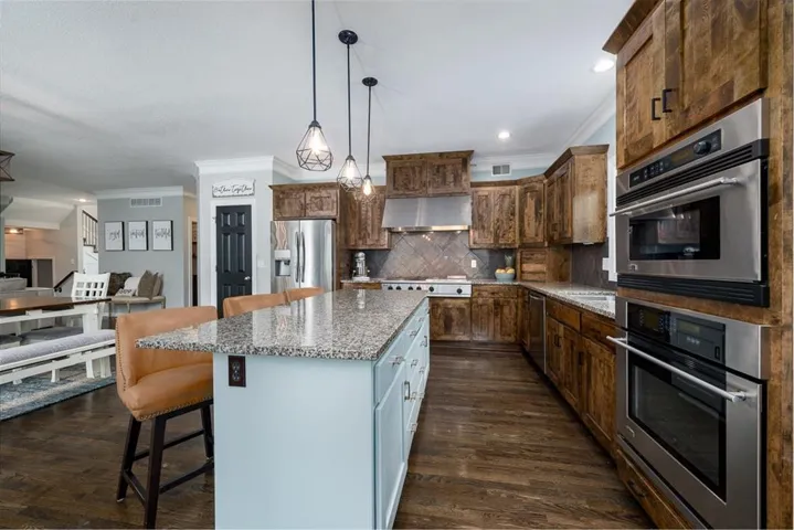 +"PublicRemarks": "Welcome to an absolutely MAGNIFICIENT, well cared for home in Whispering Pines Estates with luxury appointments at every turn! Beautiful hardwood floors throughout, spacious office with French doors & a SHOWSTOPPING gourmet kitchen with custom cabinets, large kitchen island, walk-in pantry, built-in appliances, 48” professional GAS rangetop with 4 burners, integrated griddle and separate grill with downdraft and a stunning stainless steel hood vent. This State-of-the-art kitchen elevates entertaining by connecting your great room, cozy hearth room and dining area w/ 2 bookend fireplaces offering PANORAMIC views of your RESORT like paver patio & charming firepit that will bring to life the BEST of indoor/outdoor celebrations & family gatherings! There is more than enough ROOM on Sloan Ave where you are nestled at the back of a cul-de-sac with beautiful mature trees and some EPIC privacy courtesy of a neighboring pond. If outdoor entertaining is not your jam, retreat to the basement for a Private Theater experience with projection TV, cooled multi-purpose room/gym or a great 5th non-conforming bedroom with a full bathroom + MASSIVE unfinished space for STORAGE like you have never known! NEW Windows, Roof, Gutters, Interior and Exterior Paint, Beautiful Shiplap walls, Custom Trim & Crown Molding, all new Lighting, Flooring + 5 updated bathrooms! 1 ensuite boasts vaulted ceilings, walk-in closet & private bath + 2 oversized bedrooms with BIG closets that share a full bath. You will simply LOVE coming home to this address & escaping to your one of a kind Master Suite with BONUS sitting room, custom tray ceiling & a dreamy “SEE-THROUGH” fireplace into your oversized SPA inspired bath experience, spacious shower room w/ dual shower heads + bench, XL bathtub with water jets to relax and massage your worries away, Dual Vanities with BONUS counter space and LAST, BUT CERTAINLY NOT LEAST a “must see” WALK-IN closet that DREAMS are MADE of!"