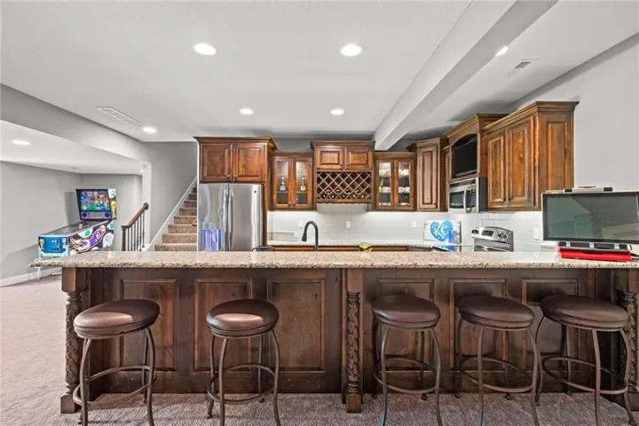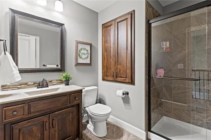 +"PublicRemarks": "Newly updated John Shilt Fairfield 1.5 story open floor plan offers ample entertaining space inside and out. The main living area has been newly painted & walnut hardwood floors refinished. The kitchen has beautiful custom cabinets with a chef’s kitchen that features two islands, one with a prep sink, and a large walk-in pantry. Off the kitchen/breakfast dining area is a screened in, composite porch with fireplace and composite sun deck with new stained railings. The freshly painted master bedroom & en-suite has new carpet in the bedroom & in his/her walk-in closets. The en-suite features a large walk-in dual headed shower and a corner spa tub, & heated tile floors to keep your feet warm on those cold winter mornings that has been regrouted. Main floor also offers an office/bedroom with new paint and carpet & an attached bathroom w/shower only. There is a half bath & an oversized laundry conveniently located on the main level. Upstairs has a loft, 3 additional bedrooms with walk-in closets, and attached bathrooms – the staircase, hallway, one bedroom and all bathrooms all have been freshly painted. You will not want to miss the living & entertaining space on the lower walk-out level that features a full kitchen, rec room, movie theatre area, 2 bedrooms with attached bathrooms, storage, & walks out to a gorgeous gunnite, heated pool & hot tub that has its own heater. The lower level as well has been freshly painted in the main area & staircase and new carpet in both bedrooms & closets. Don’t worry about communicating in this large home there is an intercom system. And to wrap it up the exterior received a new makeover as well with new paint and stain! The treed lot is nestled in a cul-de-sac with the best neighbors! Come see it today!"
