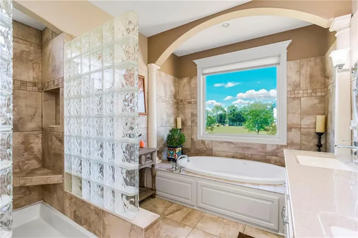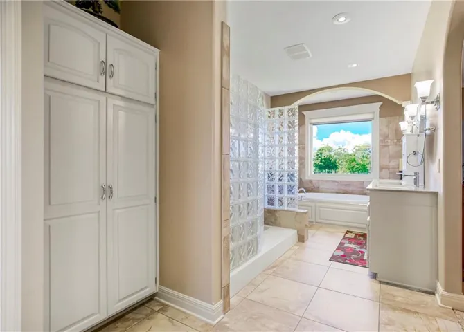 The main bedroom is connected to a luxury ensuite bath and huge walk in closet. The spa-like bathroom pampers you with heated tile floors, a huge double shower, whirlpool tub and double vanity.You’ll find the convenient large laundry with additional cabinets on the main level. \r\n