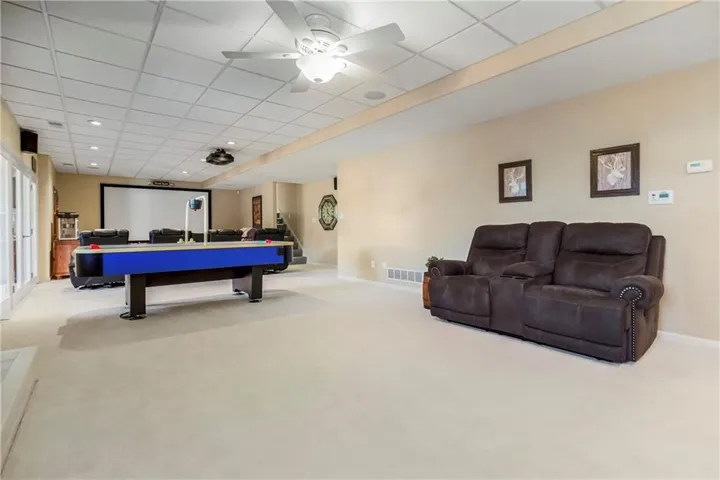 Downstairs you’ll be delighted by the huge family room and walk out exercise or private office space. This level boasts a cozy fireplace, wet bar, fridge and sink for entertaining. Enjoy a large media/theatre room with reclining seating and big screen projector and popcorn machine! The luxurious lower level also has a large 4th bedroom and full bathroom.\r\n