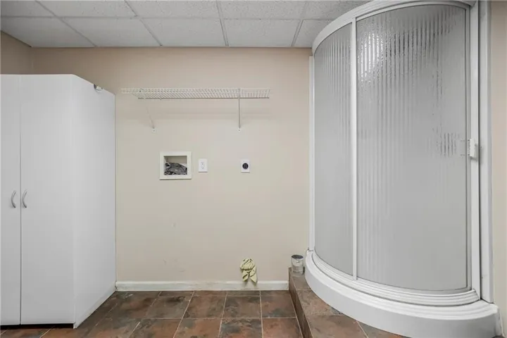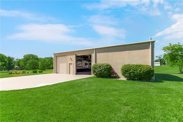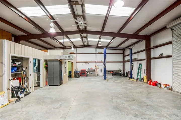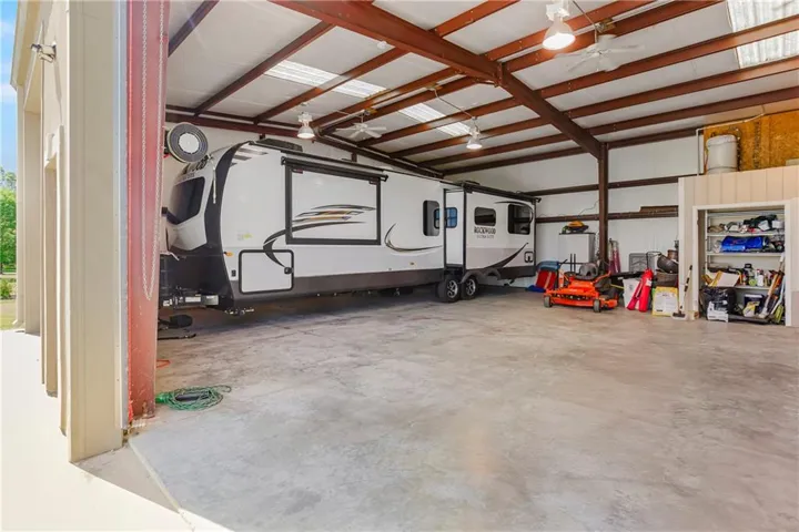 The sweeping concrete driveway from the house to an amazing 40 X 60 outbuilding allows multiple cars to park for a gathering, or to drive your RV and boat in through 2 – 12’ overhead doors.The outbuilding is fully heated/cooled, with an "office" with full bath with shower and laundry hookups. There’s an RV hookup for water, electric and sewer, and there’s also an air compressor and a car lift for auto enthusiasts.