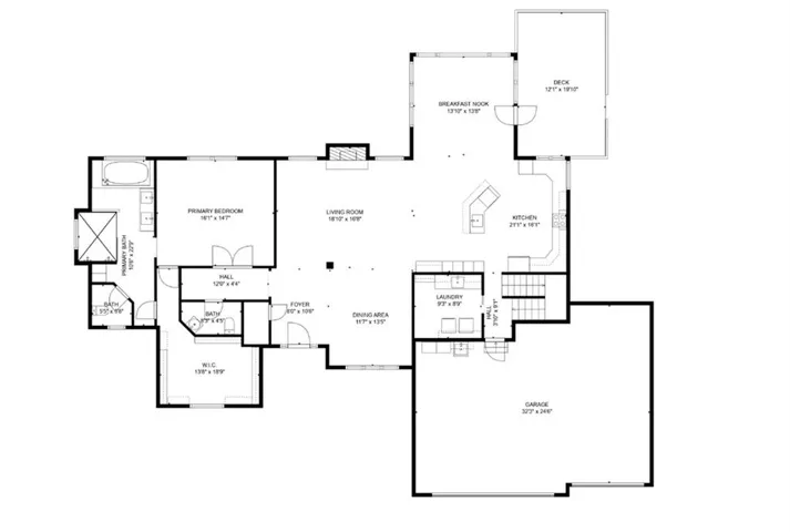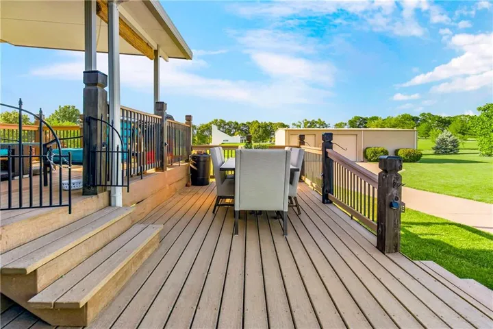 The open floor-plan of the main level sweeps the eye from soaring ceilings and architectural beams to the large kitchen and dining area. The woodwork in this home is gorgeous—from the newly finished hardwoods through the main living area to stunning custom cabinets. The expansive dining area steps out to a covered composite 2 level deck overlooking the beautiful estate. \r\n