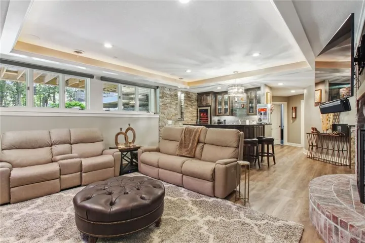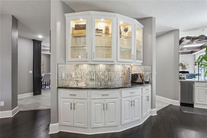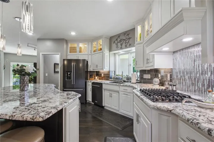 +"PublicRemarks": "This Stunning 5-Bedroom, 3 Full & 4 Half-Bathroom Estate, Extensively Renovated in 2021, will captivate you from the moment you step inside! Over 4,495 sq. ft of Refined Living Space, a 3 Car Garage, & a Professionally Landscaped yard complete w/Koi Pond & Water Features, this property is a gem in Arbores Subdivision. New Exterior Paint, a Full Asphalt Front Circle Drive, & Covered Front Entry Porch welcome you w/ Boxed Pillars, Brick Stairs, & Elegant Hurricane-Style Fixtures. Inside, the Grand Entry Hall features a See-Through Woodburning Fireplace & 18' Ceilings. The Great Room has Custom Built-In Media Cabinets, a See-through Fireplace, Boxed Beam Ceiling Features & wall of glass with Three Slider Doors. The the Incredible Eat-in Kitchen: featuring Granite Countertops, large circular island, a Radius Wine bar, a Pass-Thru Designer Serving Bar, New Cabinets, Walk-in Pantry, Upgraded Appliances & a Back Prep Kitchen! The Main Level Master Suite includes a Gas Fireplace, Sitting Area, Spacious Bedroom & Deck access. The Master Bathroom offers a Spa-Like Experience w/separate Granite Top Vanities, Dream Spa Shower, & a Jetted Tub. The office / 2nd Bedroom w/ a Gas Fireplace & Half Bath round out the Expansive Main Level. Upstairs-discover 2 Large Bedrooms, Library w/ Built-In Bookcases, 1.5 Bathrooms, plus a Loft area! Each Bedroom has a Private Vanity, Stool & Closet. Lower Level is an entertainer's haven w/ a Family Room featuring a Brick Woodburning Fireplace, an enviable Bar, & a commercial grade Built-In Saltwater Fish Tank. Relax in the Sauna Room, and half bathroom! “The Studio” is custom built with viewing windows! Plus an additional Bedroom w/ Full Bath & Walk-In Closet. Outside is your own Private Oasis. The Expansive Main Deck is accessed from the Kitchen, Great Room, & Master Bedroom. Enjoy the covered Gazebo, Stone Fireplace, and the highlight of the backyard: a Large Koi Pond w/Rock Waterfalls. This is not just a home; it's a lifestyle. Luxury Living!"