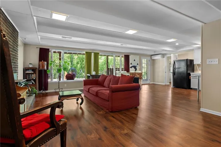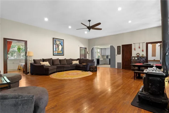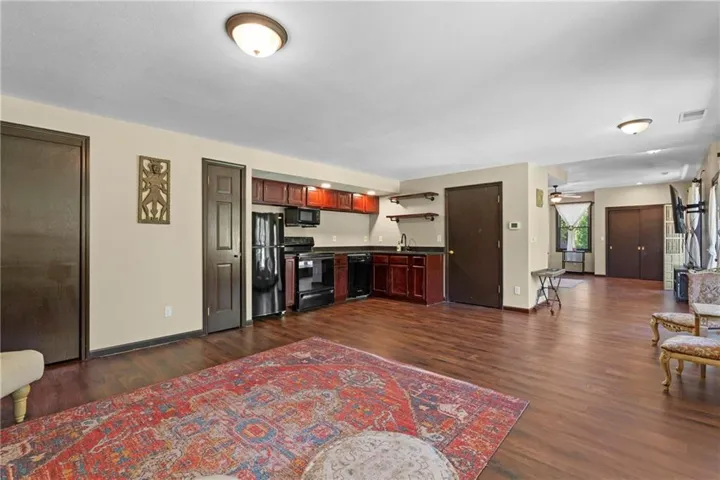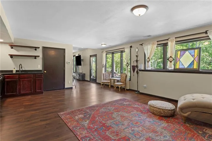 +"PublicRemarks": "Imagine a picturesque countryside, where nestled among rolling hills and lush greenery stands a charming brick schoolhouse, echoing with the laughter of children from a bygone era. This historic building, once a symbol of education, has been lovingly transformed into a stunning and unique home, blending rustic charm with modern comforts. As you approach, you're greeted by its classic red brick façade, adorned with large windows that allow sunlight to stream into the interior. Stepping inside, you're immediately struck by the soaring ceilings and vast open spaces, where the former classrooms have been ingeniously repurposed into various living areas. The main living room boasts towering windows that frame breathtaking views of the surrounding countryside and create an inviting space for relaxation and gatherings. Hardwood floors, weathered and aged with character, guide you through the home. The updated kitchen features sleek countertops and ample cabinet space. An expansive primary suite offers a sense of privacy along with stunning views and a cedar lined closet. Continue on and you’ll discover two additional living spaces with their own beautifully updated kitchens and bathrooms, perfect for multi-generational families or an opportunity for rental income. In fact, being only 6 miles from Memorial Stadium and 5 miles from Mass St., it’s perfectly suited for short term accommodations without the restrictions of city codes. The screened in porch offers a tranquil retreat that overlooks the treetops while the wrap around deck beckons you to step outside and immerse yourself in the natural beauty of the scenery. Endless opportunities for outdoor enjoyment exist. This house is the perfect fusion of serene country charm and city convenience, offering a lifestyle where you can enjoy the beauty of nature without sacrificing the benefits of urban living. Contingent upon seller finding a new home to purchase or lease."
