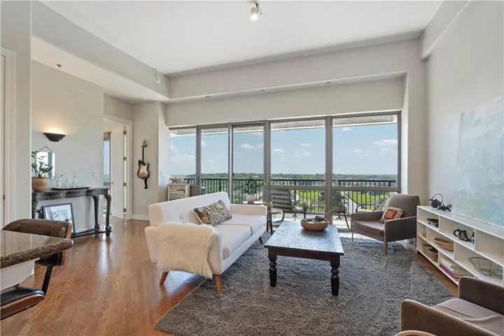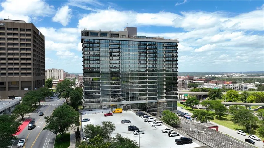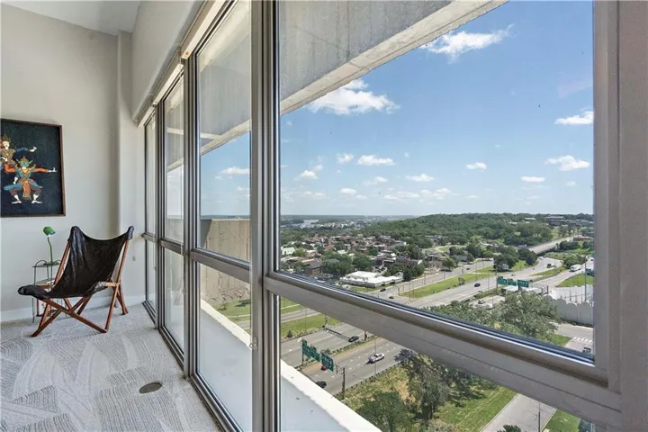 +"PublicRemarks": "Discover this exquisite 1 bedroom, 1 bath penthouse condo with amazing views! Soaring ceilings and floor to ceiling windows provide a bright, spacious, and inviting ambiance. Enjoy the convenience of a covered garage parking spot, the exclusivity of a secured floor and 8 AM through midnight concierge service. Relax or entertain on the large private balcony off the living area. The airy and open kitchen has granite countertops, ample storage and a spacious island. The bedroom offers tranquility, comfort and a walk-in closet. The amenities of the building include pools, fitness room, tennis courts, a putting green room, theater and more. Near the downtown airport, KC Current Stadium, River Market and Berkley Riverfront developments. Tax abated until 2029"