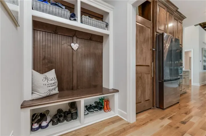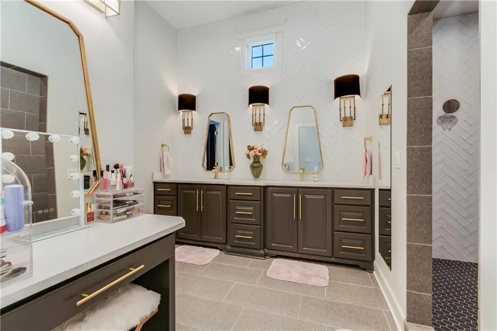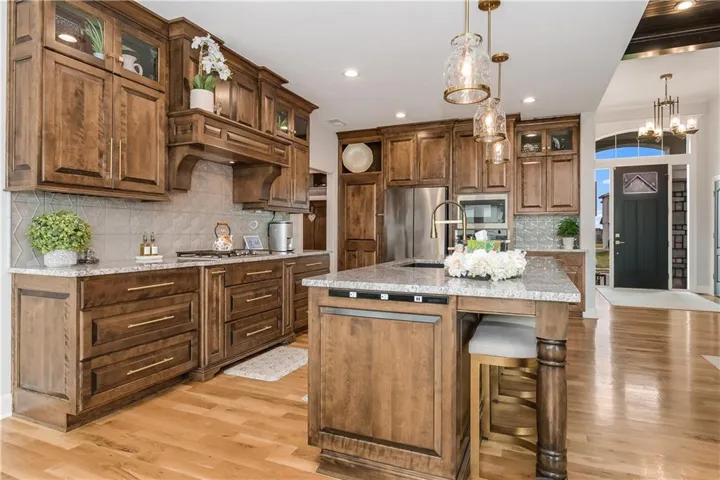 +"PublicRemarks": "Look no further with this GORGEOUS reverse split that has it all. Situated in the coveted Park Ridge Estates Neighborhood (the newer section), this house is decorated with the highest quality of fixtures, finishes, paneling, etc., this house boast everything you need and more. Every attention to detail has been considered and to replicate this same house, would be significantly more expensive. The home interior was designed by a well-known and coveted interior decorator that goes above & beyond in every facet. The spacious kitchen includes an oversized walk-in pantry, gas stove top, granite counters and a direct view to the living room for all things entertaining. The functionality of this house includes having the Primary Suite on the main level with an additional bedroom on the same level. This fully finished basement, designed for entertaining, includes a full-sized bar and two additional bedrooms--not to mention overflow area for plenty of storage. Seller and builder went all out on this dream home, to include a luxury feel throughout. The exterior, situated on a prime corner lot, includes a wrought iron fence, oversized patio for entertaining and plug-in for a future jacuzzi/hot tub. Neighborhood includes amenities galore, featuring a mansion sized club house, three pools, tennis/pickleball court, and connecting walking trails. This is a MUST SEE home. (Sellers have moved, photo's were taken when home was occupied and furnished)"