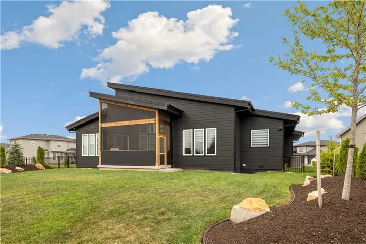 +"PublicRemarks": "Most beautiful ranch home in Lenexa for sale in the Enclave at Manchester Park. This gorgeous home features high end upgrades & designer finishes throughout. With it's Mid-Century Modern elevation, this home features 3 bedrooms on the main level along w/3 full baths, open kitchen concept w/"Cafe" appliances, waterfall custom marble top on kitchen island, custom lighting, & incredible blinds/shades throughout the home. There is also a floor to ceiling wall w/linear fireplace in the spacious great room, screened-in covered patio w/outdoor grilling area, large beautifully landscaped yard that is fully fenced and a sizable 3-stall garage w/custom floor finish. The spacious Master suite also has vaulted ceilings w/wood floors leading into the gorgeous master bath and walk-in closet. As you make your way down to the lower level, you'll find a designer staircase & rail leading you to the oasis of entertainment. There is a beautiful wet bar, w/granite tops, custom cabinets and SS appliances. There is a recessed ceiling in the LL Recreation room looking out over the large media wall and a hidden workout room that you don't want to miss. In addition, you'll find a 4th bedroom & 4th bath along w/plenty of storage and a workshop area too. This home is extremely tastefully decorated, so it's easy to get lost in all the beauty of the furnishings but don't look past all of the great built-in features, room details and extras that this home already has. Call listing agent with any follow up questions or showing instructions for this property. It is absolutely stunning and can be easily shown."