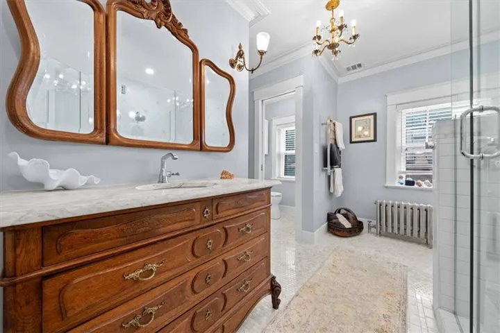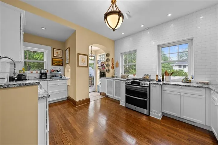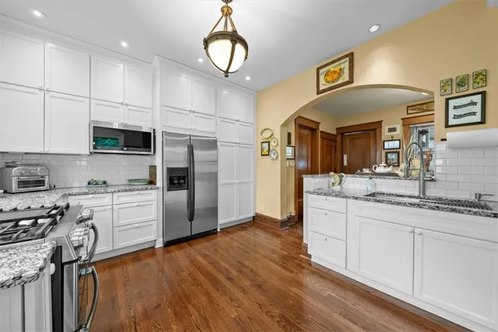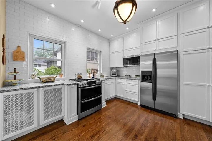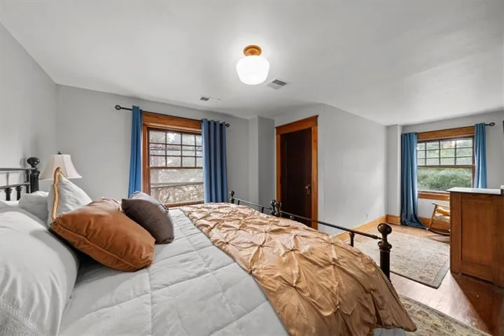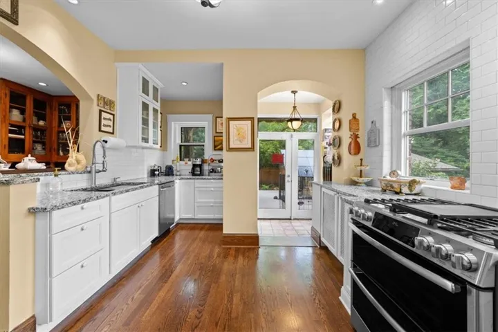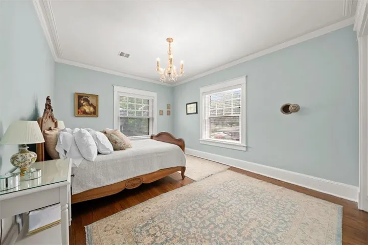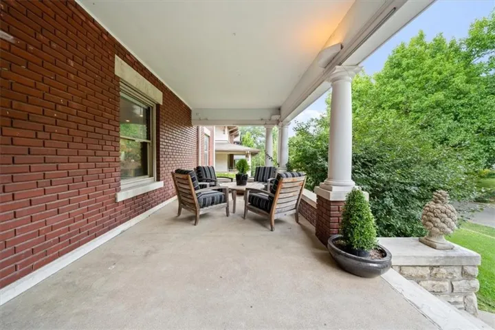 Welcome to this stunning all-brick home, perfectly blending classic elegance with contemporary updates. From the moment you step onto the expansive wrap-around porch, you'll be enchanted by the charm and sophistication that defines this residence. Enjoy large bedrooms, each featuring generous walk-in closets, ensuring ample storage space for all your needs. The home boasts beautiful hardwood floors throughout, adding warmth and character to every room. Entertain in style with a formal dining room and a formal living room, complete with a cozy wood-burning fireplace. Appreciate the unique charm of all original tubs, maintaining the home's historic integrity. A bright and airy sunroom offers a perfect space to relax and soak in natural light. The updated kitchen features tall cabinets that reach the ceiling, providing both style and practical storage solutions. The laundry room is conveniently located on the second floor for ease of access. The primary bedroom includes its own fireplace, creating a serene and inviting retreat. One bedroom is located on the main level, while the third floor offers an optional rental unit or a perfect mother-in-law suite, complete with its own kitchen and laundry hookups. This home offers easy access to the highway and is just a short drive from the vibrant Downtown area, making it an ideal location for both convenience and tranquility. High ceilings throughout the home enhance the sense of space and grandeur.\r\n