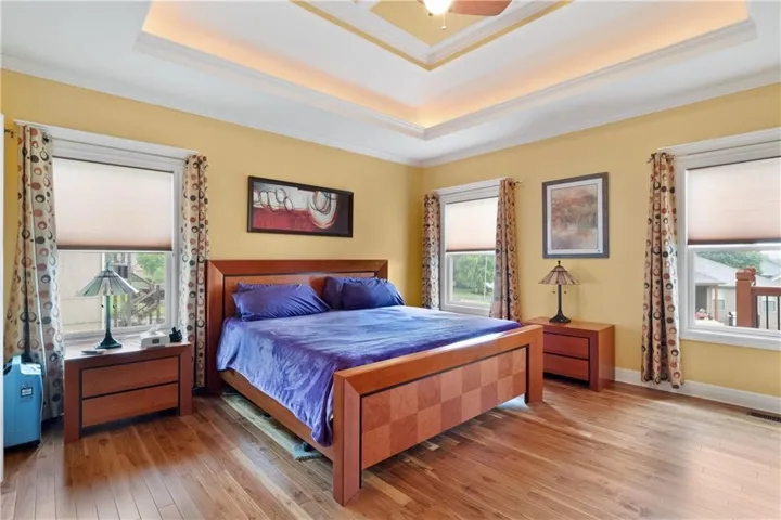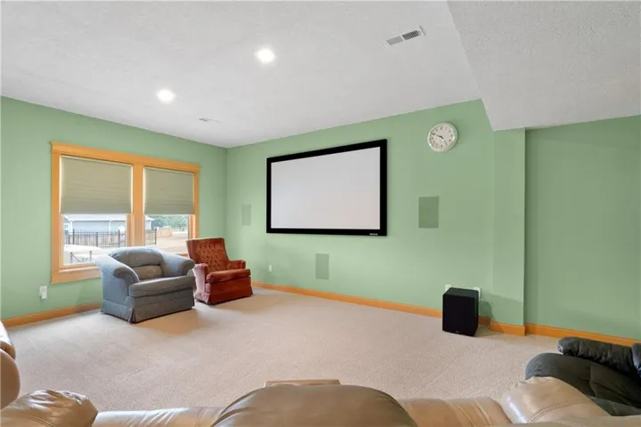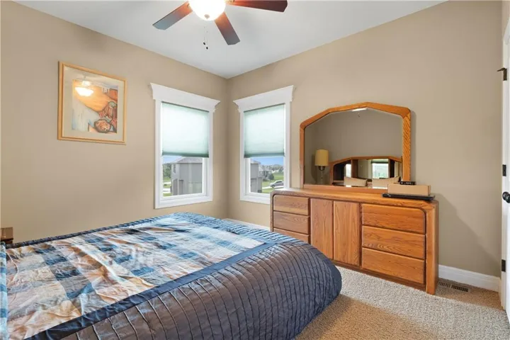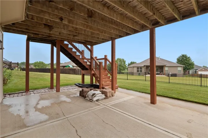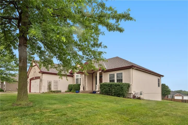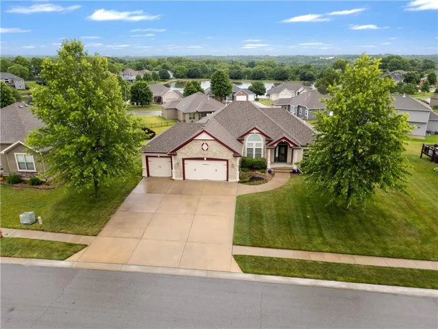+"PublicRemarks": "Spacious Custom Ranch home with loads of extras. Hardwoods, Granite, vaulted ceilings, custom tile and covered deck. Lake view with lots of space. Full walk out lower level with seperate laundry and a spa style bathroom and steam shower. Hobby room or work shop off the back with its own lower level patio. Easy highway access to all points in the Greater Kansas City ara as well close to Leavenworth/Lansing as well as less than 30 mintues to Lawrence. Legends Shopping District is less than 5 miles away."