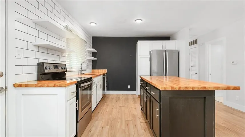 Recently remodeled to a 3BR, 1 & 3/4 Bathroom home with a separate 640sqft 2 story apartment off the alley. Work in both units included new HVACs, plumbing, electrical, drywall, insulation, windows, doors, flooring, and appliances. The House has a wonderful open feeling with a masonry fireplace [that hasn't been used since purchased] that gives the Living Room enough separation to satisfy the need for division. The floating shelves and subway tiled wall of the two toned kitchen give it that modern feeling while the Island provides a great spot to pull up a stool for any meal. The full bath was completely updated and a 3/4 bath with Laundry hook ups was added. All 3 Bedrooms have plenty of space. A mixture of hardwood, laminate, and tile floors make clean up a breeze. \r\n