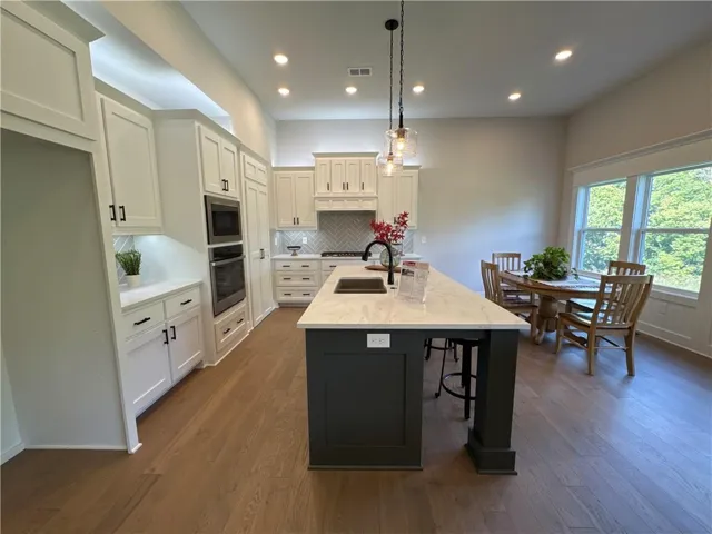 +"PublicRemarks": "The RODDENBURG By Pro Builders is a 3 bedroom 2 bath Open Concept True Ranch plan that offer A large living space that flows into the amazing Kitchen with Custom cabinets (Builder Specializes In and has his own Cabinet shop!) and Stunning Island perfect for entertaining and family gatherings. With all one level living the Private Master suite on the main level offers a Zero entry shower for a Spa like experience and Oversized WIC. Walk out onto your covered deck to enjoy your large lot that backs to green space! Located in the Seven Bridges Subdivision In Unincorporated Platte County . This home is *complete* and ready to tour!"