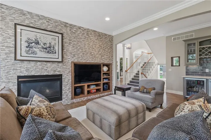 +"PublicRemarks": "Gorgeous 1.5 Story home in Cedar Creek Shadow Highlands. Nestled on a picturesque, treed lot with a deck, patio, and turf space. This home offers serene views of Shadow Glen's 16th Hole and beautiful Kansas sunsets. Expansive living room with stone fireplace and newly updated wet bar/beverage station, are all part of this open floor plan. Completely updated kitchen with white cabinets and modern finishes. First-floor den, perfect for an office or a second bedroom on the main level. Spacious loft area and additional room upstairs with great views, ideal for a play area, exercise room or lounge. Three generous bedrooms on the upper level, providing ample space for family or guests. Recently updated landscaping and turf area perfect for enjoying the outdoors and Cedar Creek's nature. Walkout out lower level with large rec room. Plenty of room to finish more square footage. If you love golf, Shadow Glen Golf Club is nearby. Sailing, fishing, or kayaking/canoeing is also nearby at Shadow Lake. This home has full access to all the amazing Cedar Creek amenities including 65-acre fishing, sailing/ canoe / kayak lake, dock access for sailing and small boats, two swimming pools, two story clubhouse w/ indoor basket/volley/pickle ball. Party and meeting rooms, lighted outdoor tennis courts, parks, play areas, walking trails and so much more!"