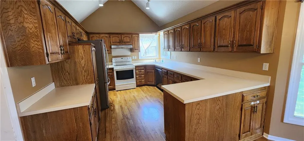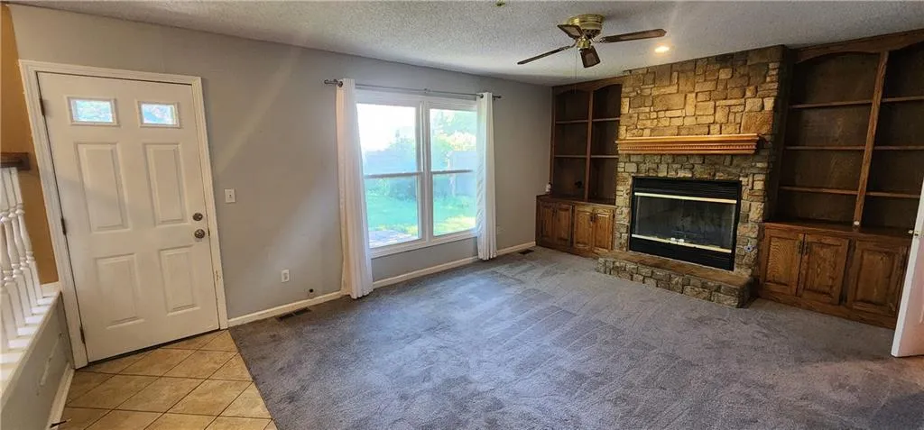 +"PublicRemarks": "Cul-de-sac location super close to Garmin, walking distance to schools, and close (but not too close) drive to I-35! Lots of space to spread out with 3 Living Spaces: main level Living Room, the Garage Level Family Room and the Partially Finished Sub-Basement. Hardwood flooring runs from the Front Entry to the Kitchen and on into the Dining Area which has a Bay Window Expanding the Room to allow for a larger dining table. An impressive amount of counter and cabinet space in the Kitchen which is Open to the Dining Area and Family Room below. Family Room with built-in display shelving and closed cabinets flanking the fireplace. Primary Suite with 2 walk-in closets and a double vanity! No HOA! New dishwasher last year. Window World replacement windows 2011 making the home more energy efficient. Radon mitigation system already installed. Roof replaced approx 2011. Selling As Is. Are you handy? Good at drywall repairs and painting? How about a little bit of exterior siding repair? This may be the perfect home for you and is priced where you can afford to fix it up! Repairs made to primary bath shower but drywall around and below shower (garage ceiling) have not been completed. Sub-basement foundation leak was corrected years ago but drywall and carpet were never replaced. There was a chimney fire 2005 (or prior) - you may want to consider using the fireplace with candles or having a ventless or electric fireplace installed. Large shed in the fenced backyard for extra storage. See completed foundation work from 2020-2021 attached to the seller's disclosure. To give you a feel of the floorplan, there is a video walk through in the Virtual Tour Link."