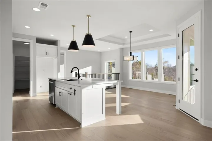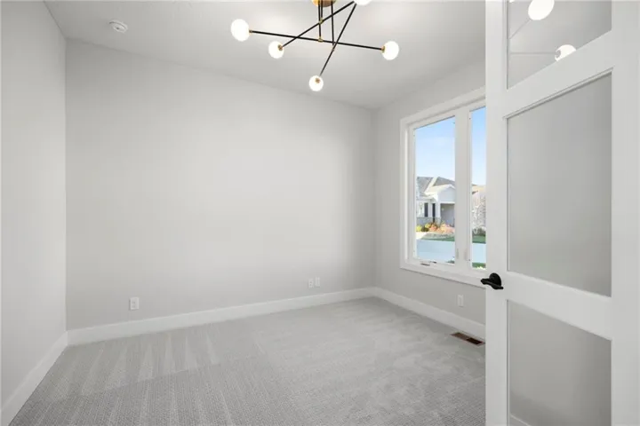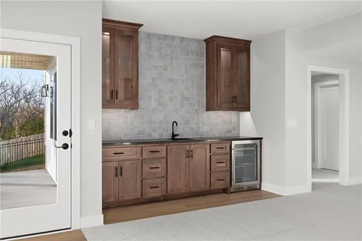Amazing J.S. Robinson Fine Homes custom reverse 1 ½ story on a private walk-out lot backing to trees. Open floor plan with main floor primary bedroom and main floor office/2nd bedroom. Wall of windows floods the main floor with light and frames the view of nature. Stunning primary bathroom with quartz countertops, upgraded tile, and upgraded décor. Kitchen boasts custom cabinets w/ soft close doors/hinges, quartz countertop, walk-in pantry, GE appliances, and large dining area. Finished walk-out lower level with walk-up bar, huge recreation room and 2 bedrooms both with ensuite. Plenty of unfinished space for storage and a 3-car garage complete this home. Great neighborhood with fabulous pool. Award winning Olathe Northwest school district. Excellent location close to shopping, restaurants, and easy highway access. Call today for additional information.\r\n