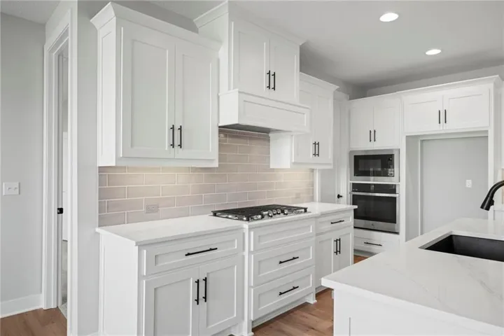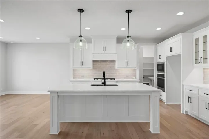 Award-winning J.S. Robinson Fine Homes Augusta reverse 1 ½ story floorplan. Dramatic vaulted great room w/ ridge beam. Expansive main floor with Open floor plan with main floor primary bedroom and main floor office/2nd bedroom. Stunning primary bathroom with quartz countertops, upgraded tile, and upgraded décor. Kitchen boasts custom cabinets w/ soft close doors/hinges, quartz countertop, walk-in pantry, GE appliances, and large dining area. Finished lower level with walk-up bar, huge family room with game room and 2 bedrooms both with ensuite. Covered, screened patio to enjoy the outdoors and a 3-car garage complete this home. Great neighborhood with fabulous pool. Award winning Olathe Northwest school district. Excellent location close to shopping, restaurants, and easy highway access. Call today for additional information.\r\n